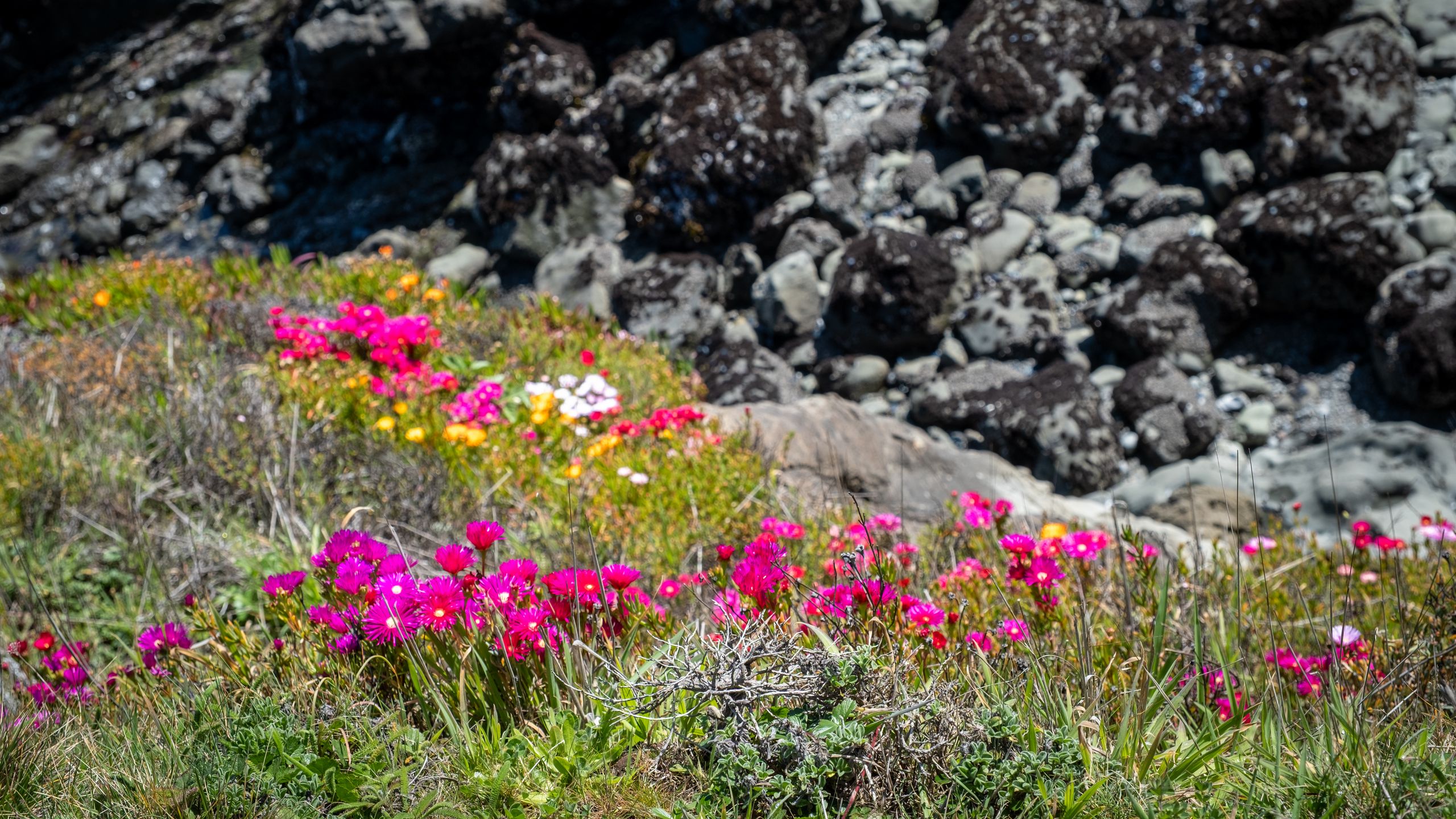 Download 2560x1440 flowers, grass, stones, nature wallpaper, background widescreen 16:9