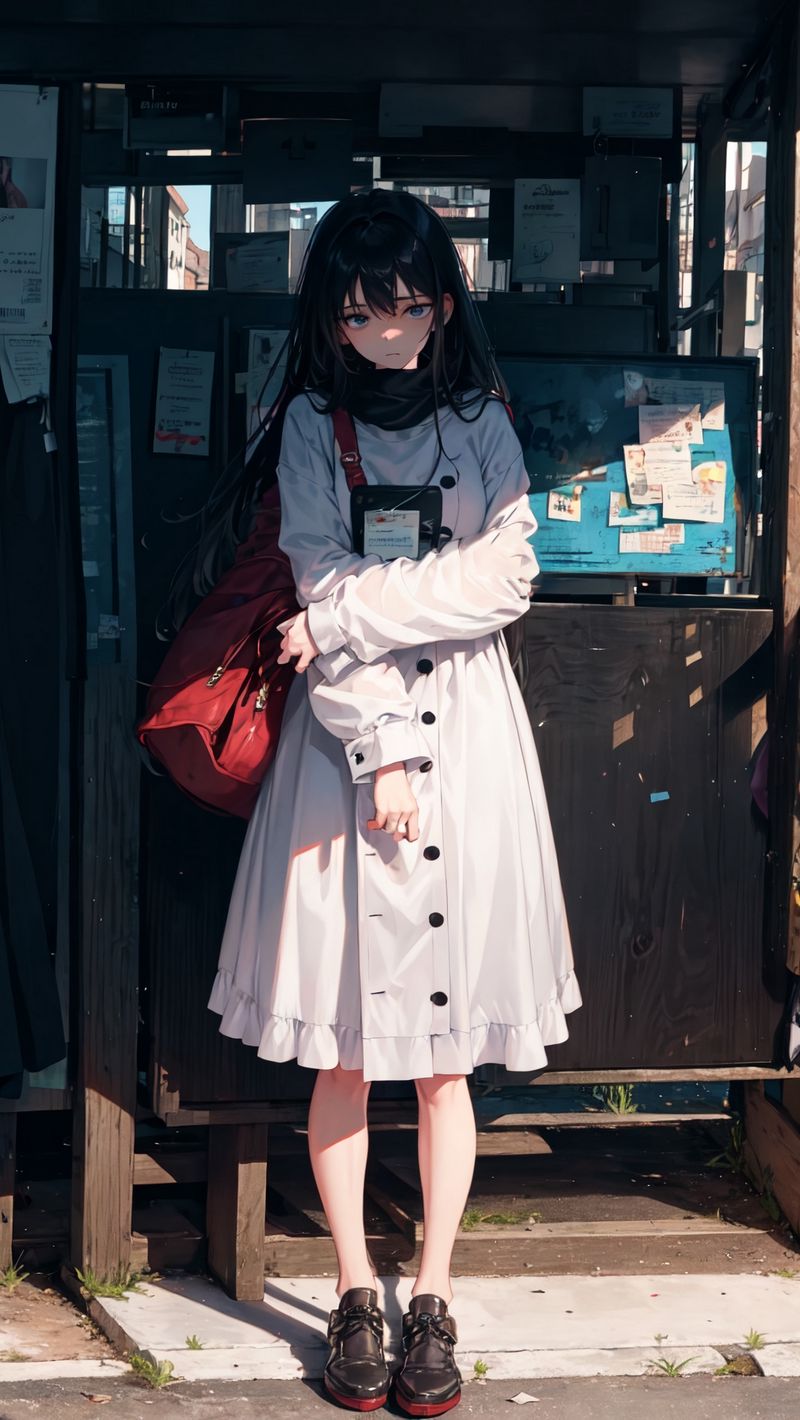 Download 800x1420 girl, pose, bag, bus stop, anime wallpaper, background iphone se/5s/5c/5 for parallax