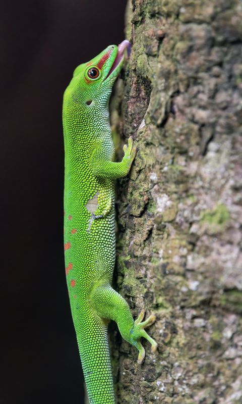 Download 480x800 madagascar day gecko, gecko, lizard, tree, macro wallpaper, background nokia x, x2, xl, 520, 620, 820, samsung galaxy star, ace, asus zenfone 4