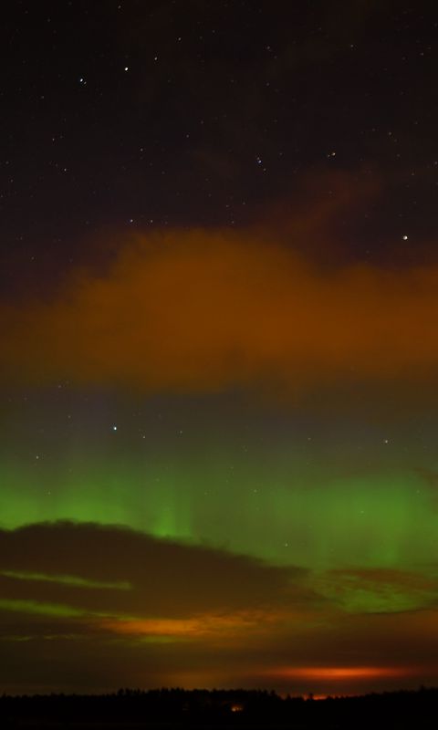 Download 480x800 northern lights, clouds, stars, space, dark wallpaper, background nokia x, x2, xl, 520, 620, 820, samsung galaxy star, ace, asus zenfone 4