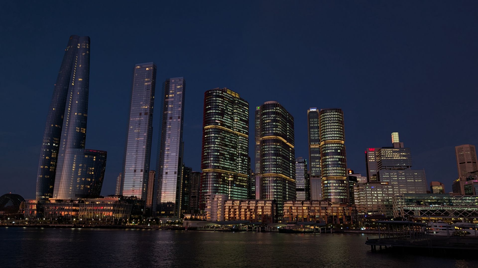 Download 1920x1080 buildings, city, river, bridge, evening, night, dark wallpaper, background full hd, hdtv, fhd, 1080p
