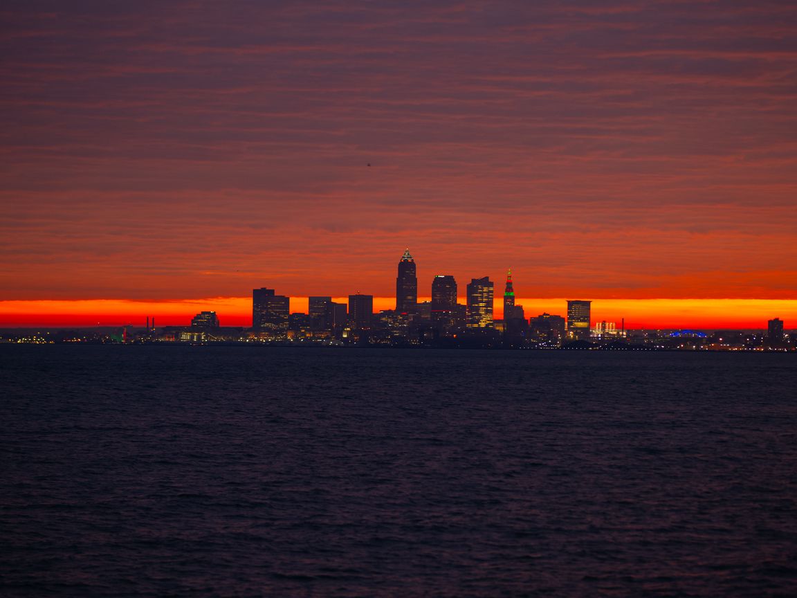 Download 1152x864 city, sea, sunrise, dark wallpaper, background standard 4:3