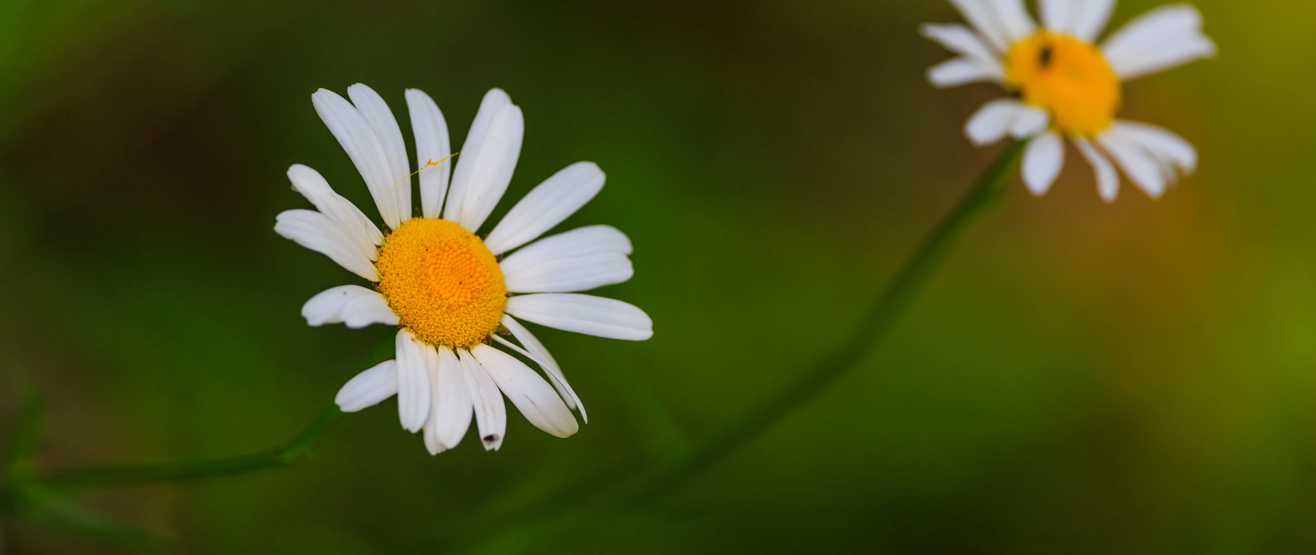 Download 2560x1080 daisies, flowers, petals, blur, nature wallpaper, background dual wide 1080p