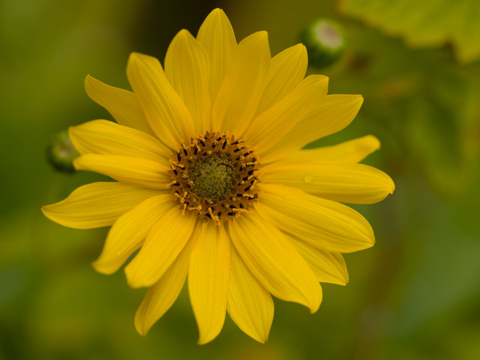 Download 1600x1200 flower, petals, drops, macro, yellow, blur wallpaper, background standard 4:3