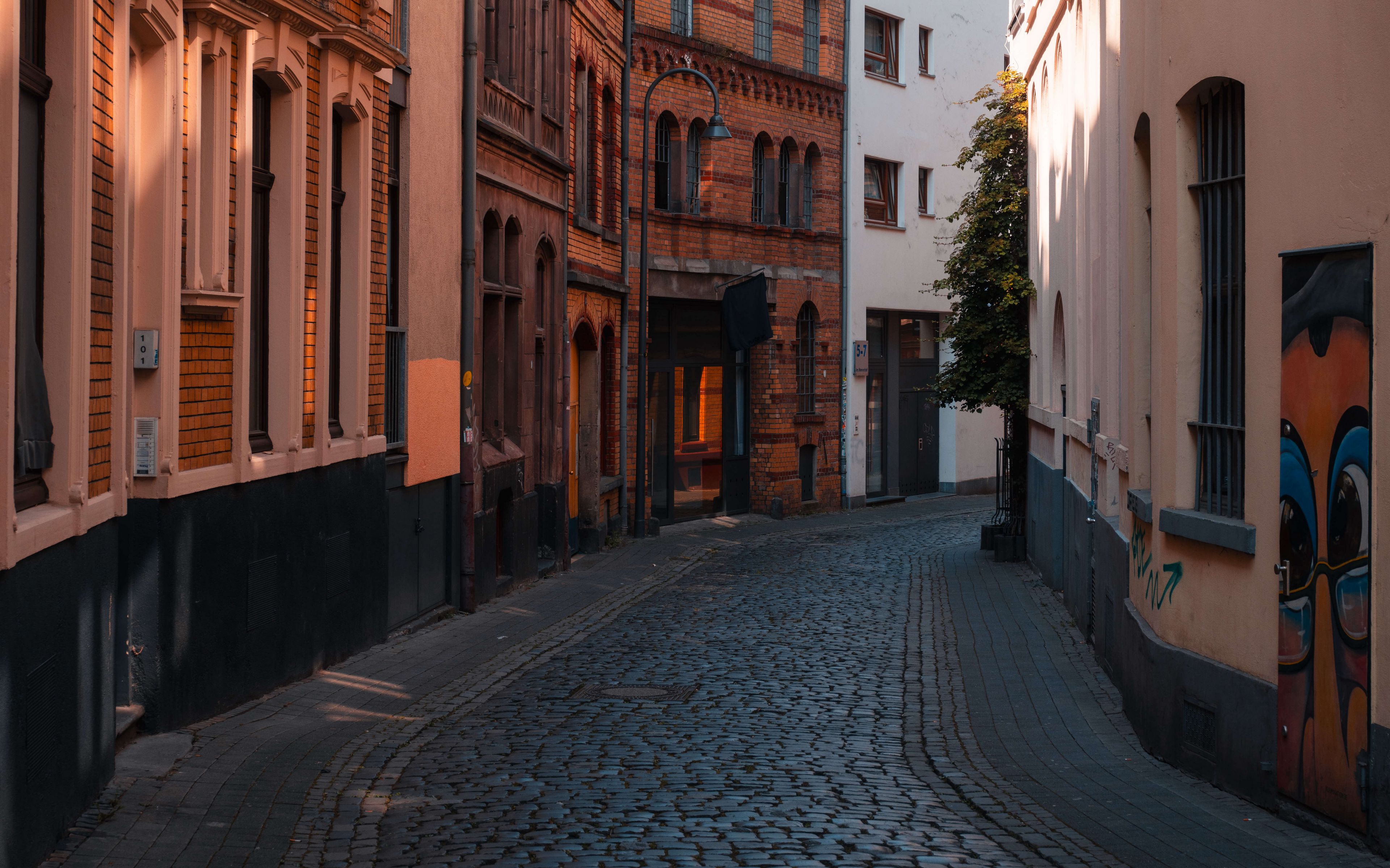 Download 3840x2400 street, buildings, paving stones, architecture, flashlight wallpaper, background 4k ultra hd 16:10